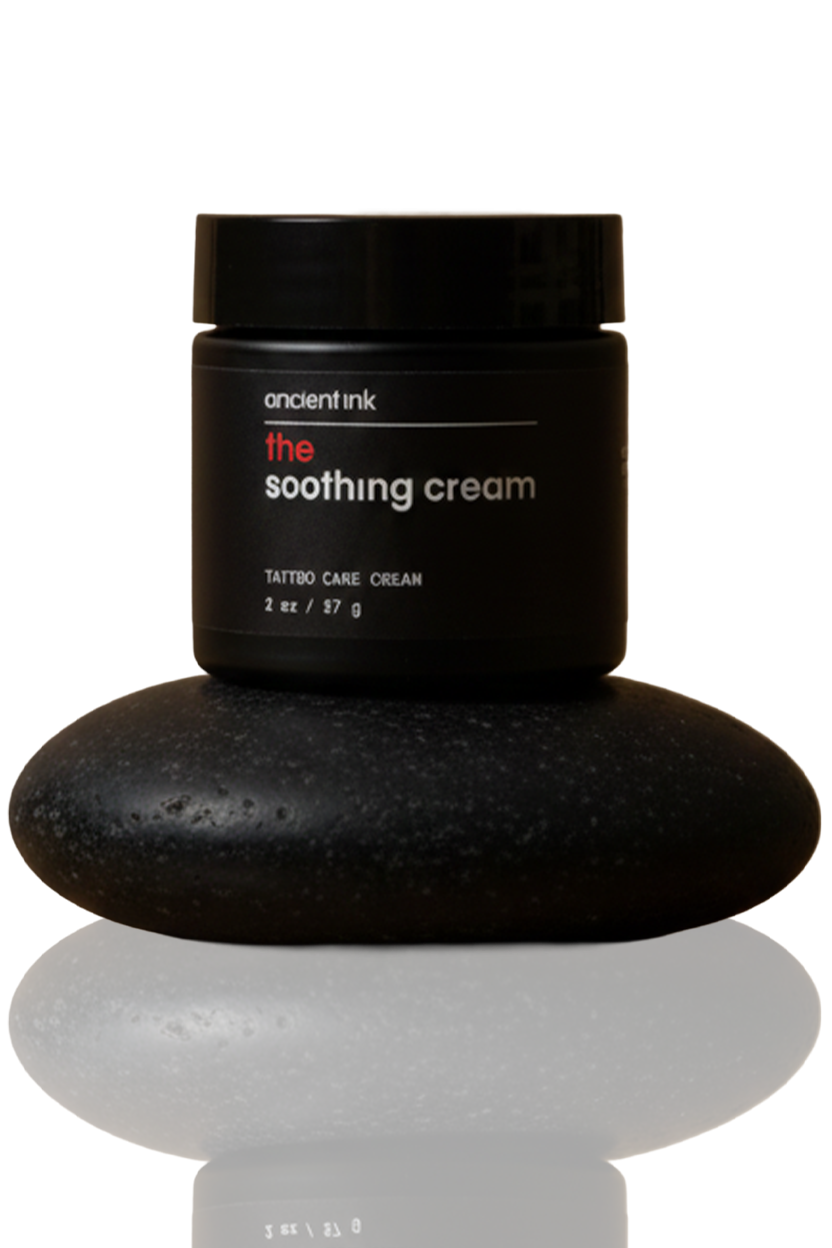 Rooted in organic compounds trusted for centuries and elevated by modern innovation, Ancient Ink™ Soothing Cream is a restorative aftercare essential designed to calm, protect, and support both freshly tattooed and fully healed tattooed skin. This lightweight, non-greasy cream absorbs quickly, delivering a cooling sensation while helping reduce redness and irritation on new tattoos while nourishing healed ink to maintain vibrancy, smoothness, and long-term skin health.